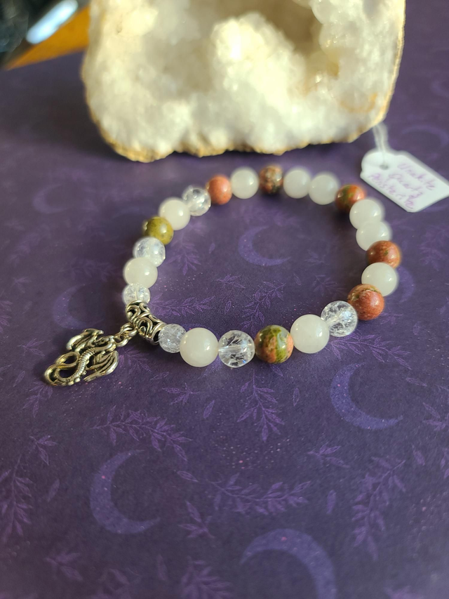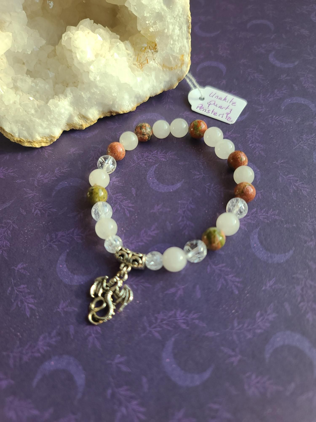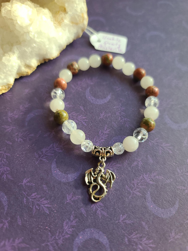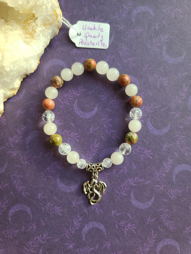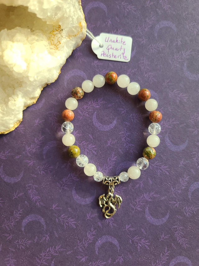 Bracelet Alliance Draconique : Unakite, Péristérite & Quartz