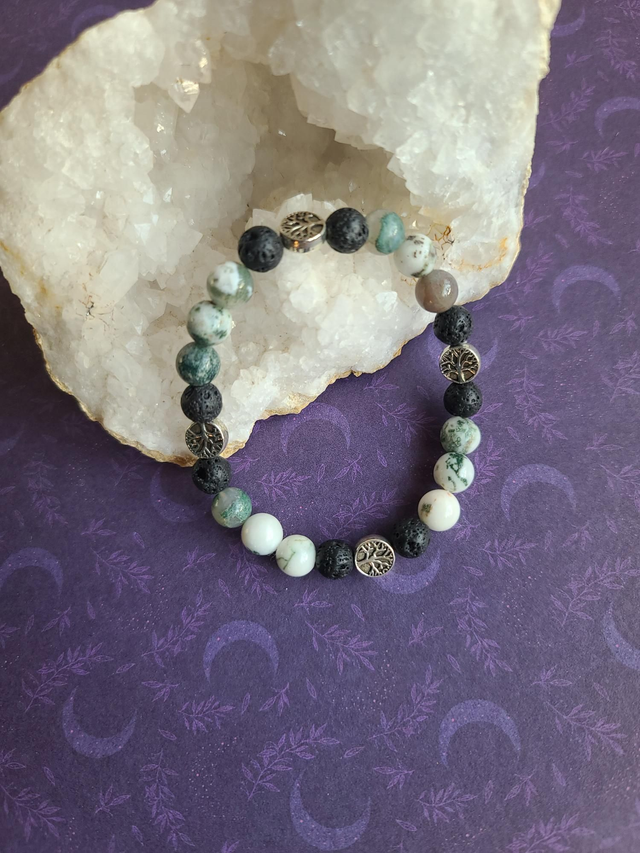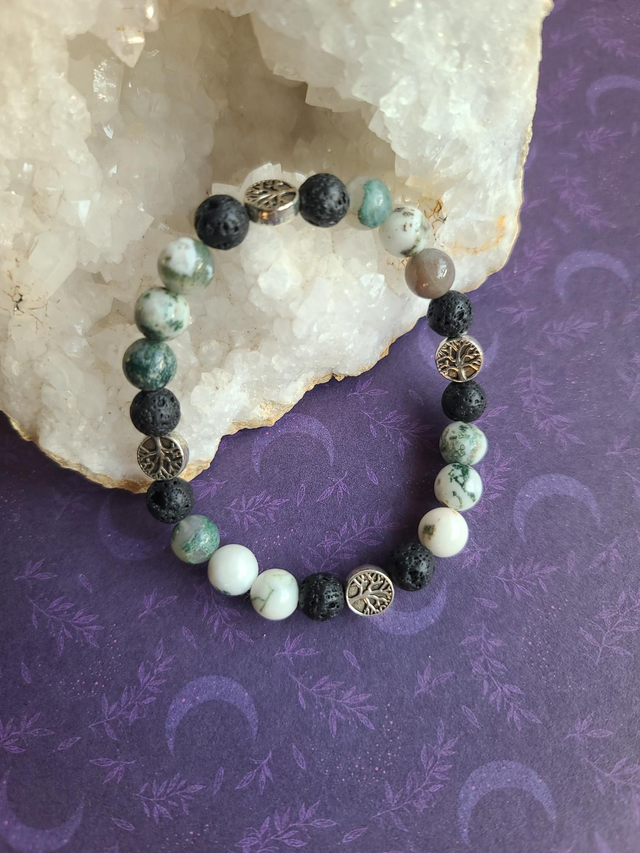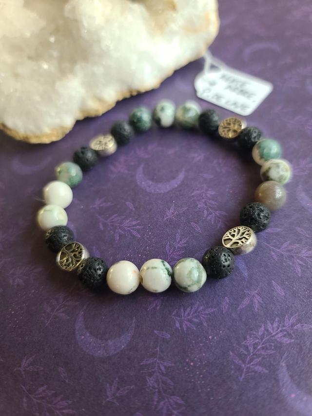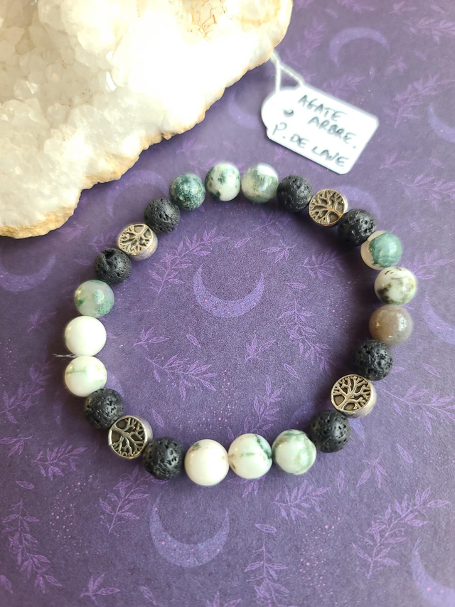 Bracelet Racines : Agate Arbre & Pierre de Lave