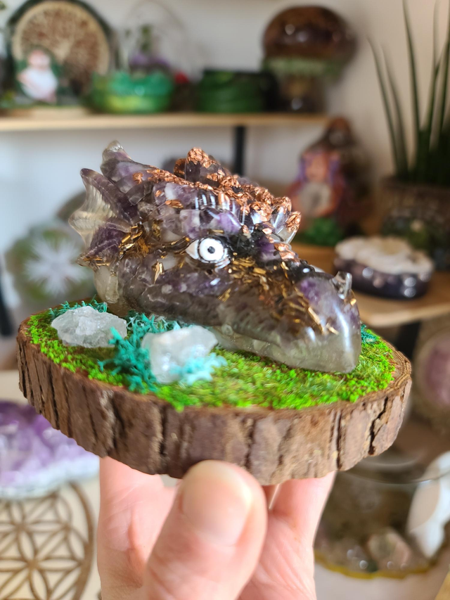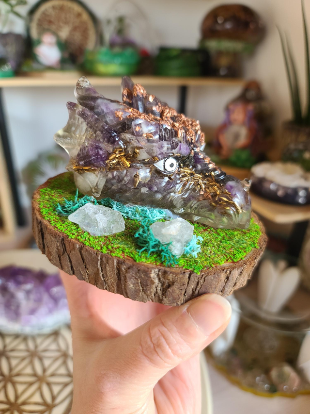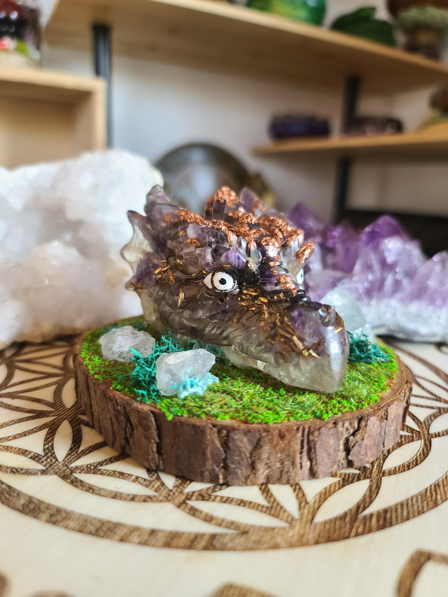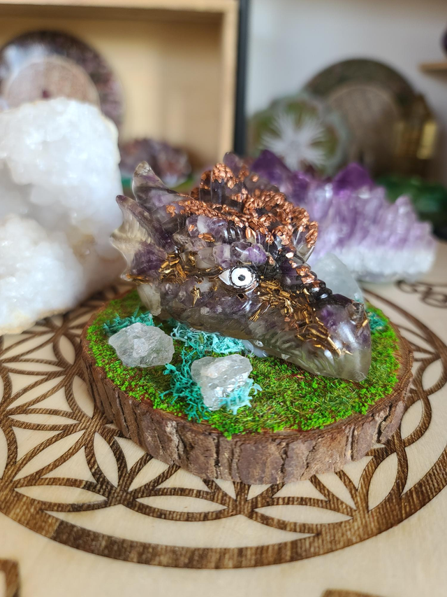 Crâne de Dragon : Orgonite Améthyste et Cristal