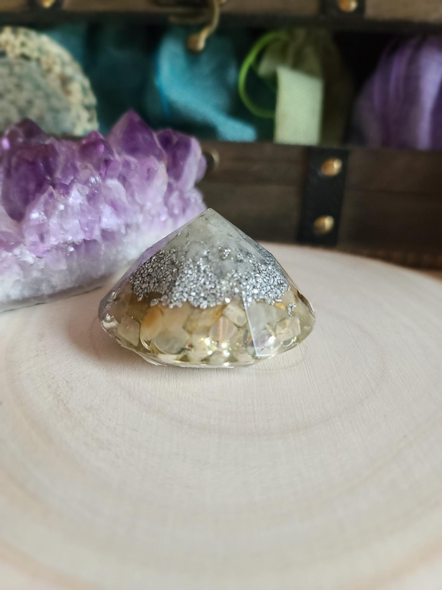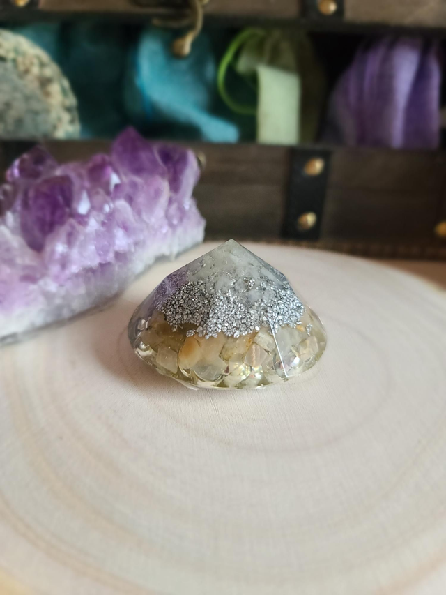 Il diffuse en continu les propriétés protectrices de l'orgonite pour harmoniser votre champ énergétique personnel.
