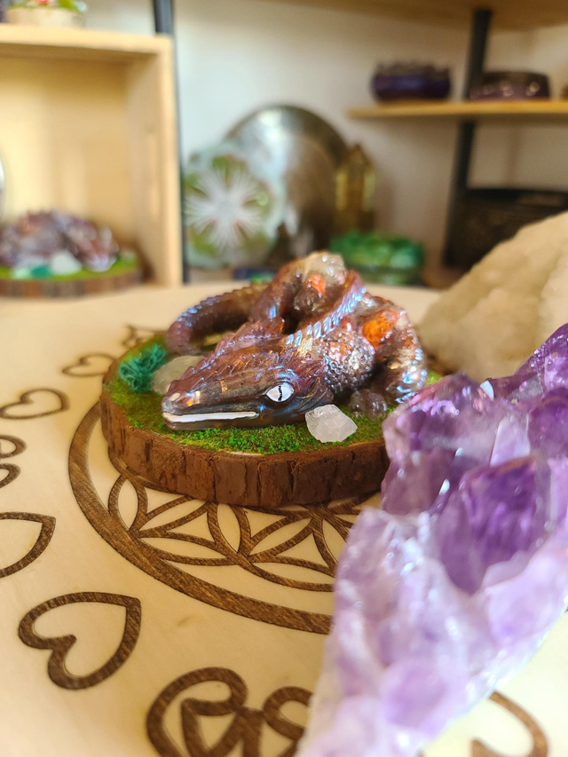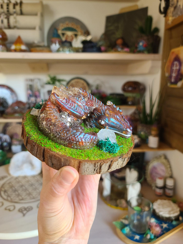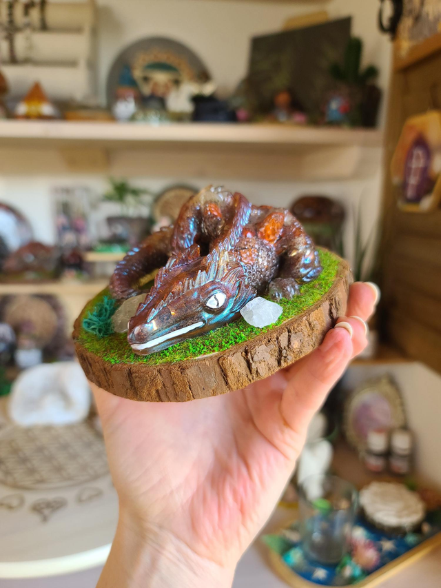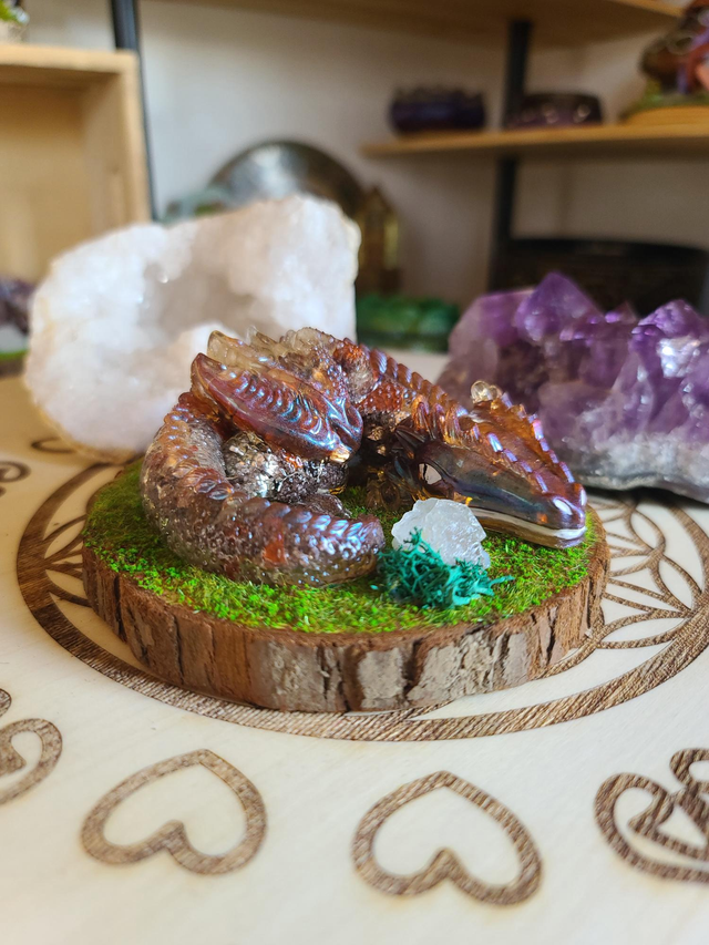 âCe gardien de 260 g est une orgonite que j'ai entiĂšrement façonnĂ©e Ă la main.
