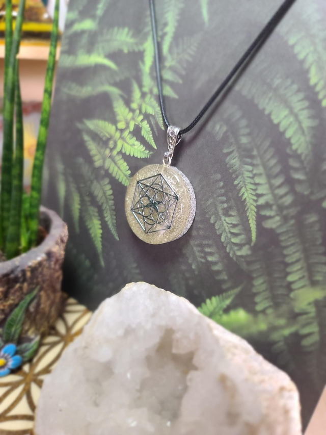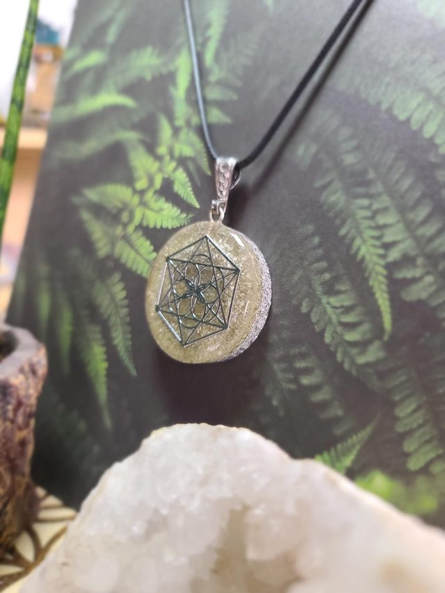 "Pièce unique, réalisée à la main avec des matériaux de qualité, chaque médaillon est une création énergétique personnalisée."