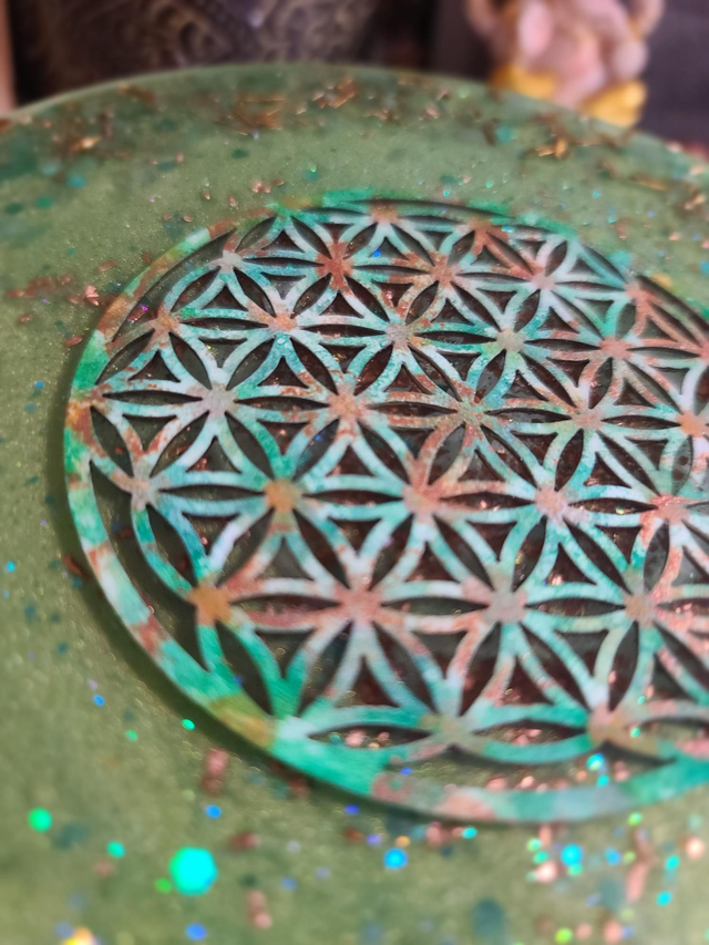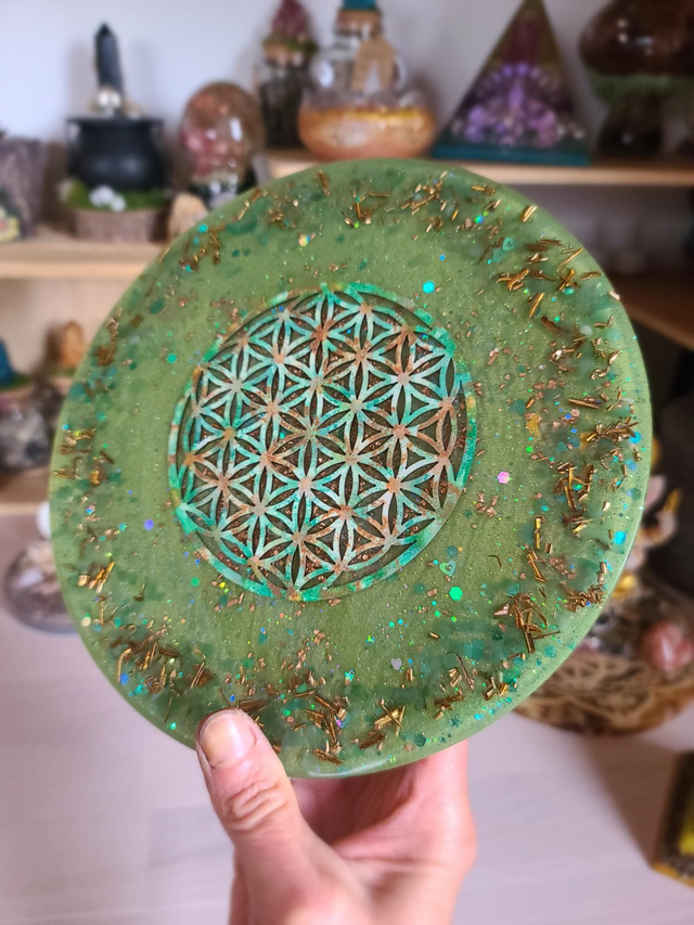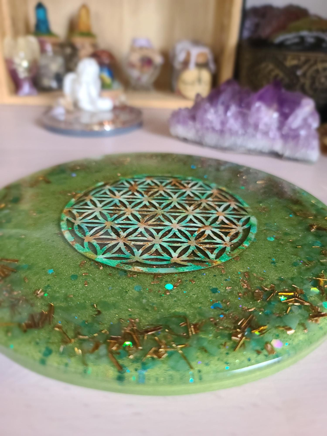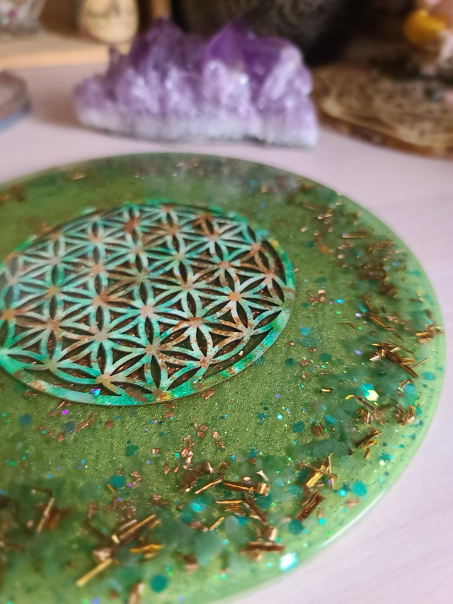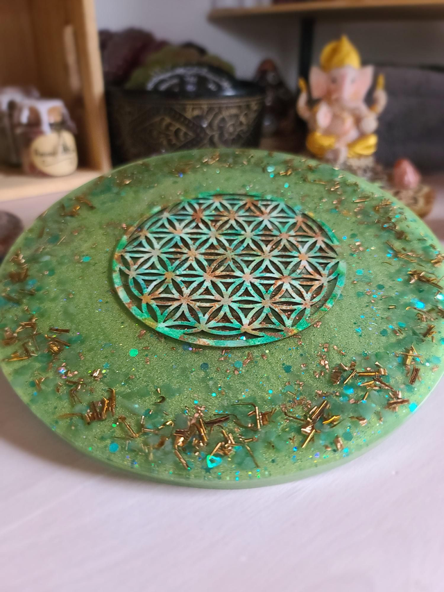 âHarmonisez votre espace et attirez la prospĂ©ritĂ© avec ce grand plateau Orgonite Fleur de Vie (â19cm).