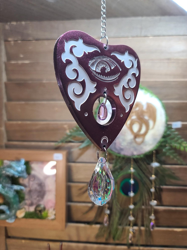 Ce capteur de soleil est orné d'une planchette divinatoire (la "goutte Ouija"), un clin d'œil subtil et mystique.