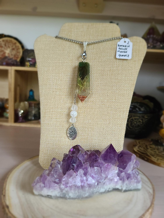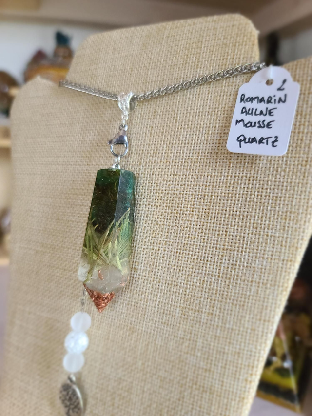 âChaque piĂšce est une miniature de la nature, fabriquĂ©e avec amour Ă partir d'Ă©lĂ©ments de mon jardin : du fruit d'aulne, de la mousse de forĂȘt et du romarin sĂ©ché pour leurs vertues magiques. Du quartz est Ă©galement infusĂ© dans chaque pendule, amplifiant son Ă©nergie et sa connexion spirituelle.