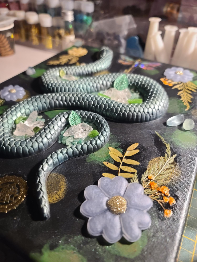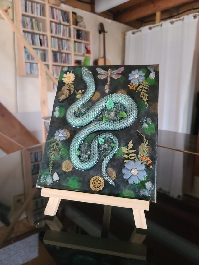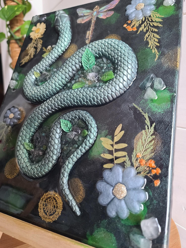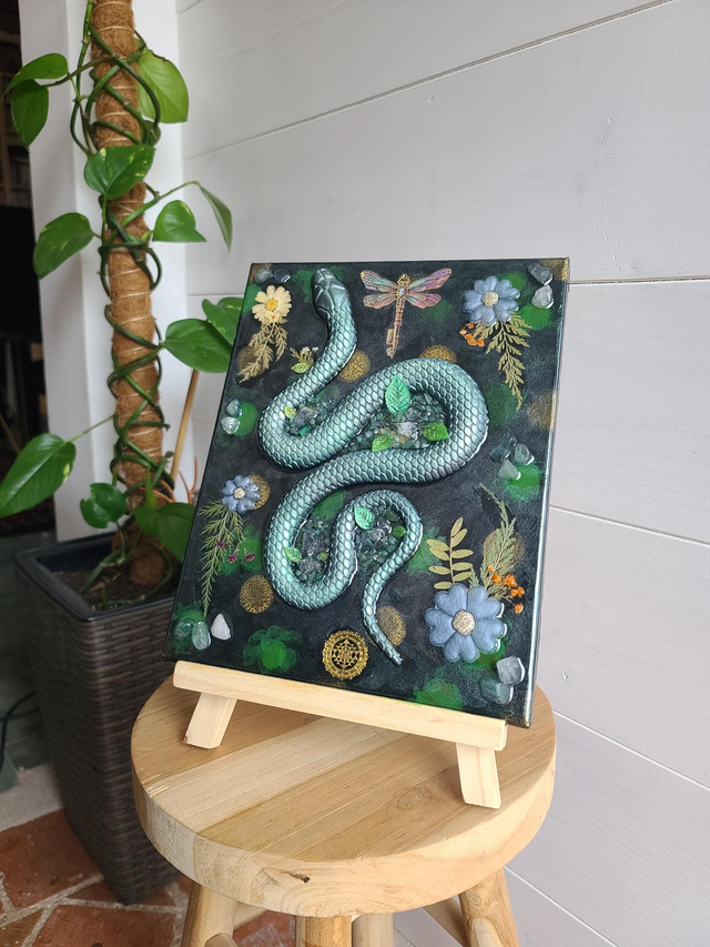 ​Cette œuvre murale met à l'honneur le serpent, puissant symbole de mue et de renouveau. Ce cadre a été conçu comme un objet de décoration vibratoire inspirant pour accompagner tes transitions et ton évolution personnelle.