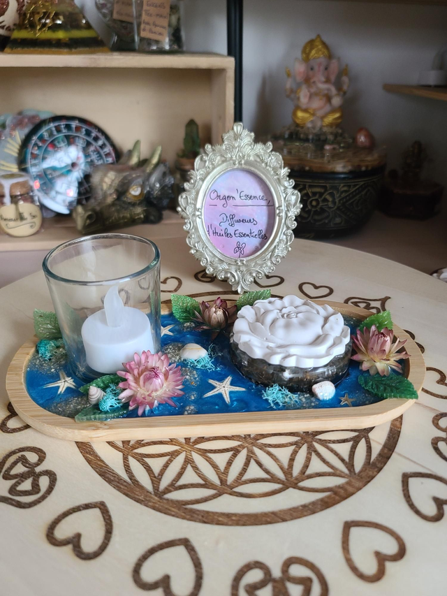 âDouble Usage : S'utilise comme diffuseur d'huiles essentielles (Galet Orgonite inclus) ou comme Ă©lĂ©gant support pour une bougie.