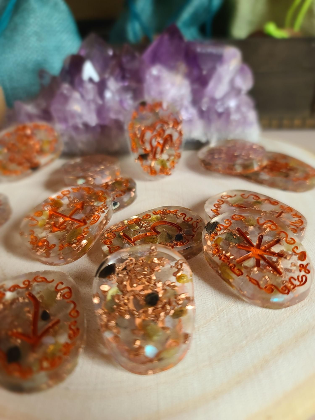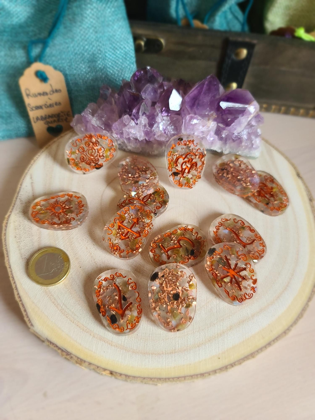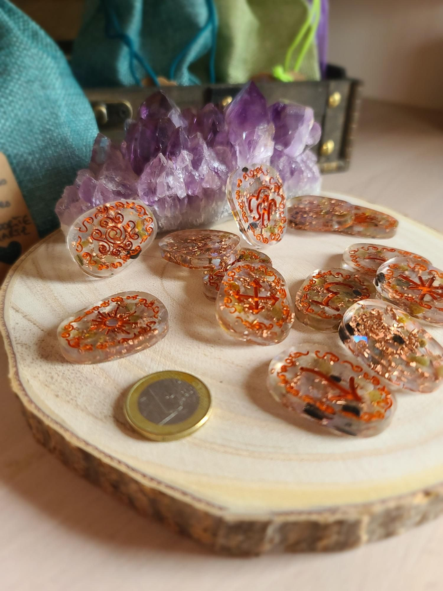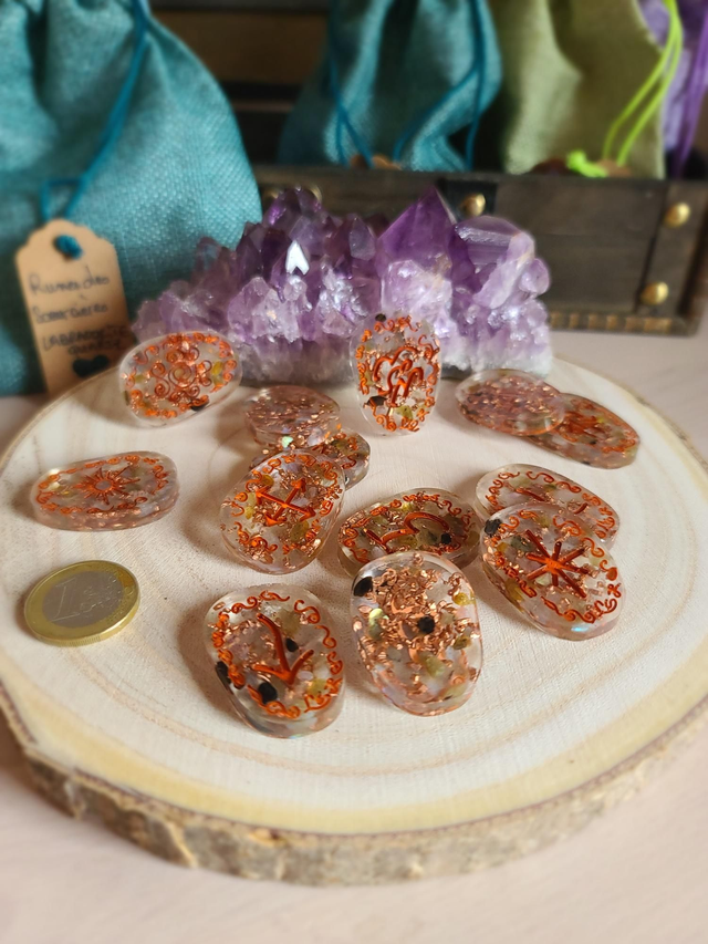 Ces magnifiques runes, moulées en résine et incrustées de labradorite et quartz, choisis avec intention, sont parfaites pour guider vos pas sur votre chemin spirituel.