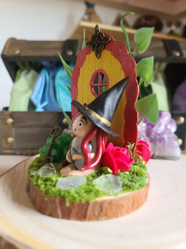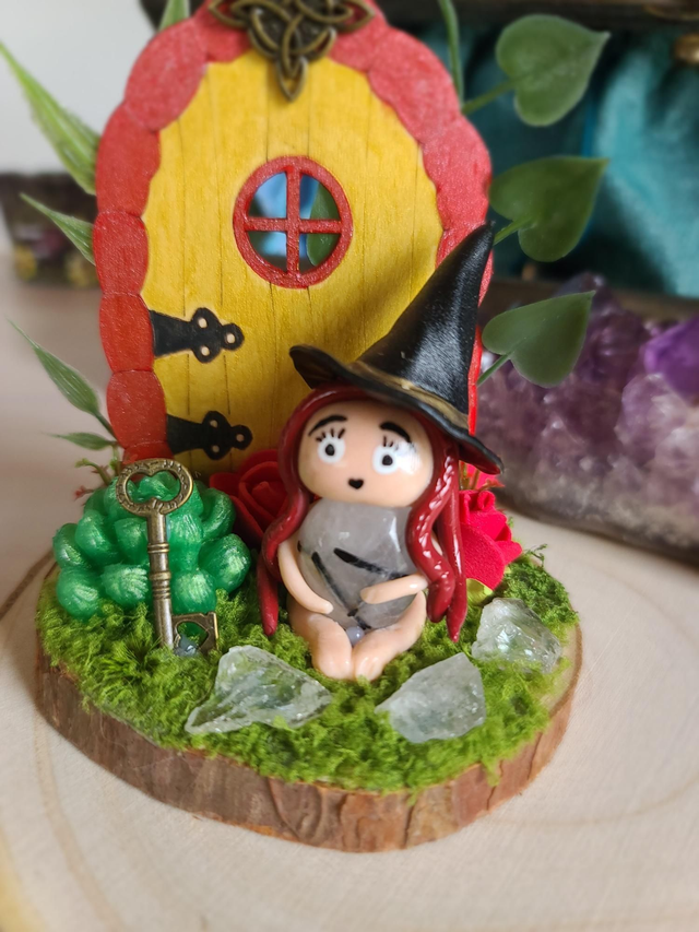 Cette petite sorcière, faite main avec soin, est prête à veiller sur votre foyer.
